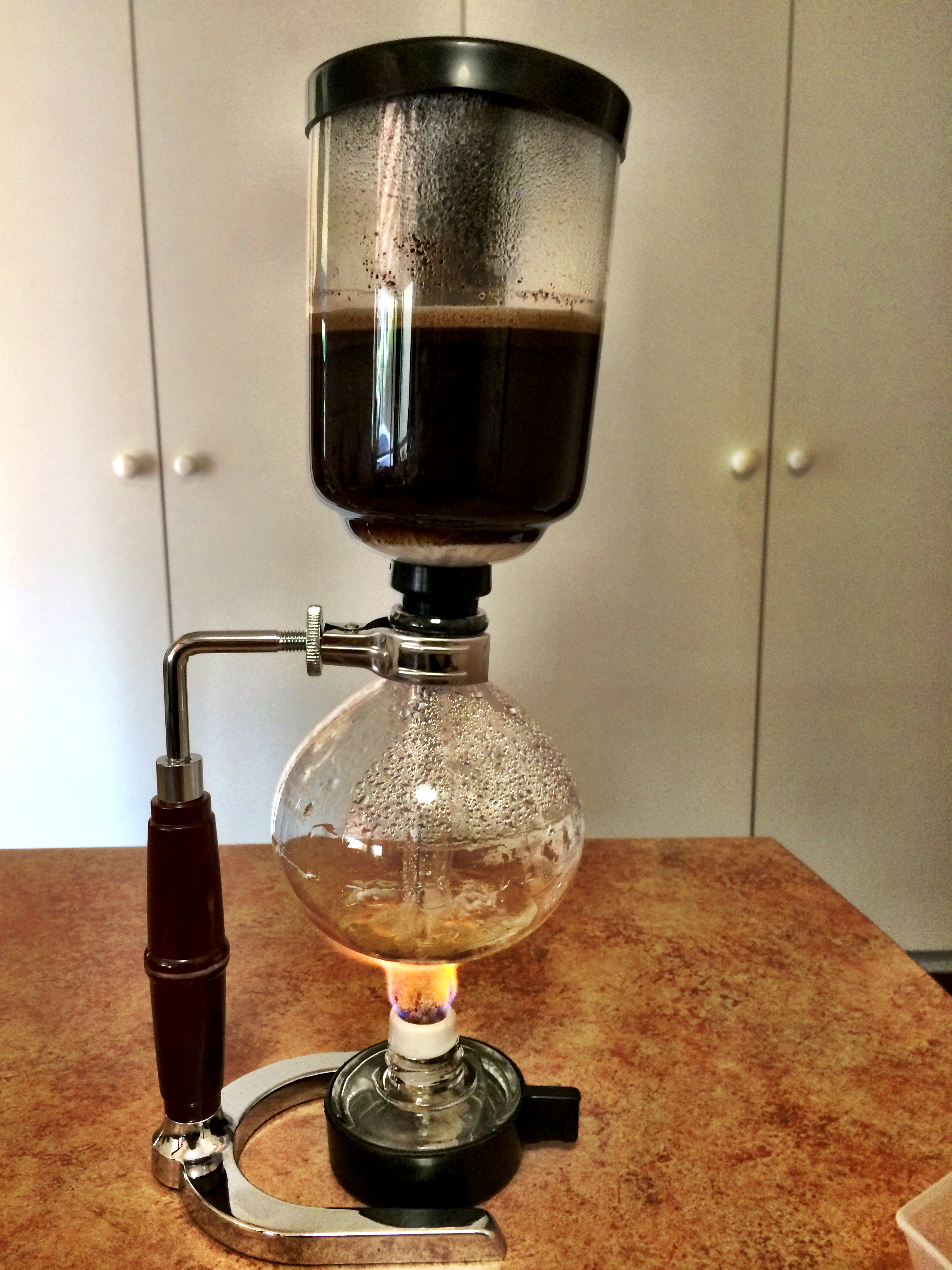 First put the kettle on the boil. Cut strips of peel off the orange and reserve the better looking ones for garnishing. Squeeze the peels first into a measuring jug then place the peel in too. Pour the boiling water in the measuring jug until you have reached the 1 cup mark. Pour this liquid into the bottom chamber of the cloud pour.