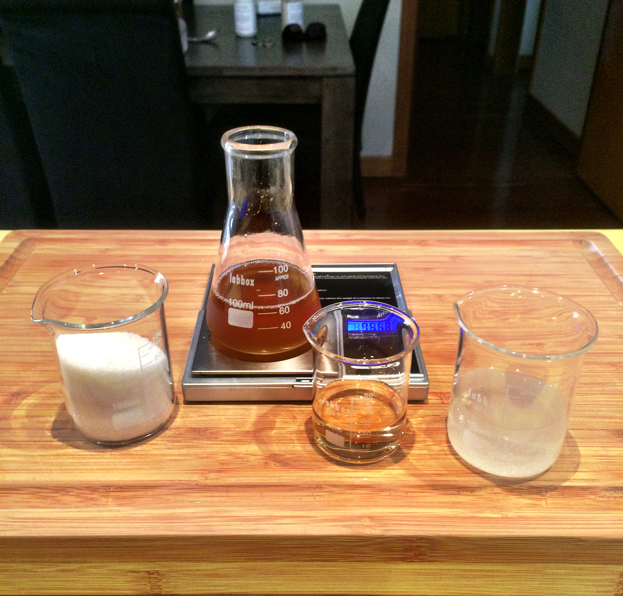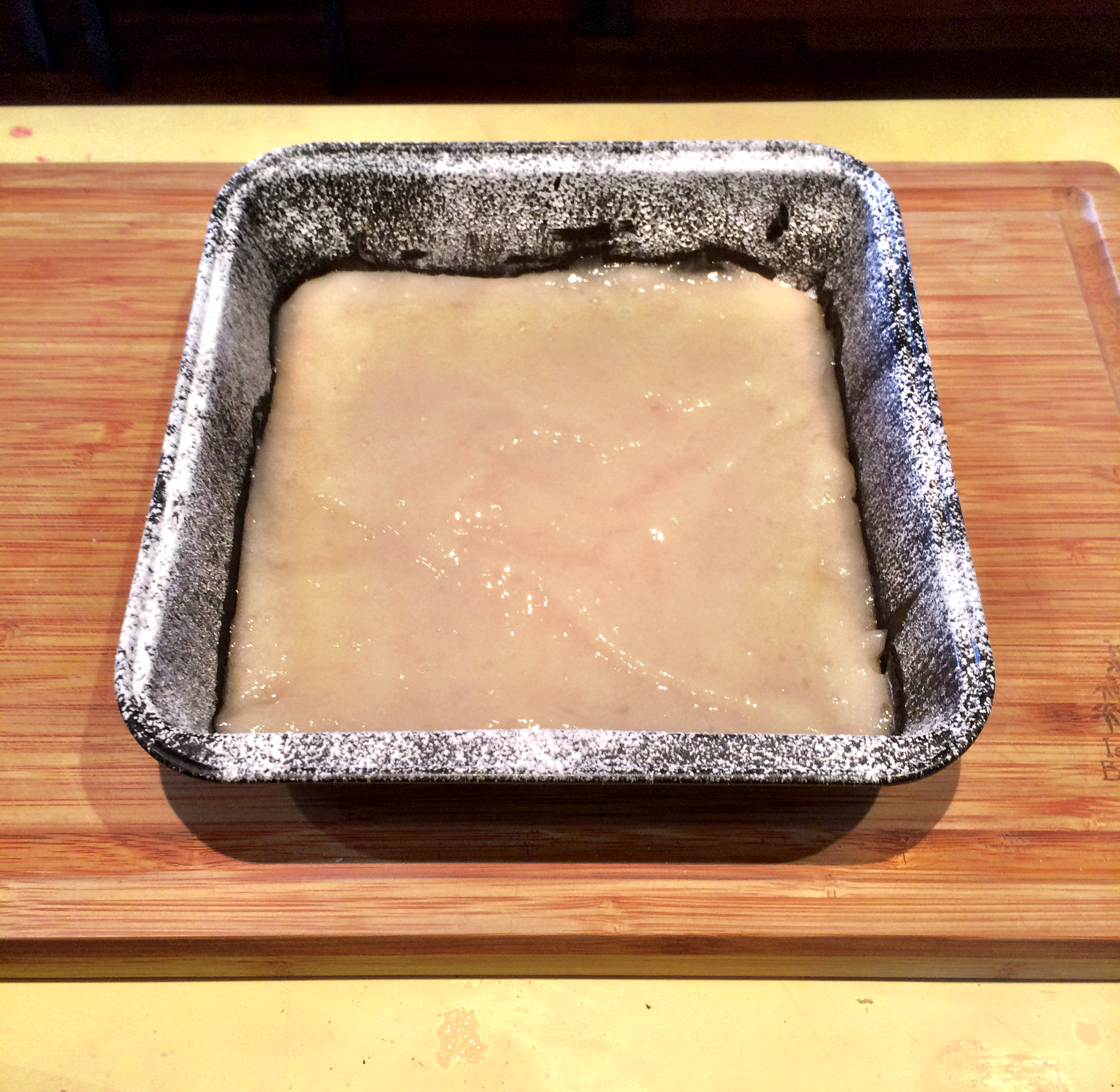 Gelling, stir the water into the 125°C syrup. It will seize up, but continue to heat it and it will quickly become a fluid syrup again. Now whisk the locus bean gum and the kappa carageenan into the hot liquid. Stir this well for 2 minutes then pour the hot syrup into the marshmallow base while beating. as soon as it has combined pour the marshmallow mixture out into your prepared baking tray and allow to set in the fridge for at least an hour.