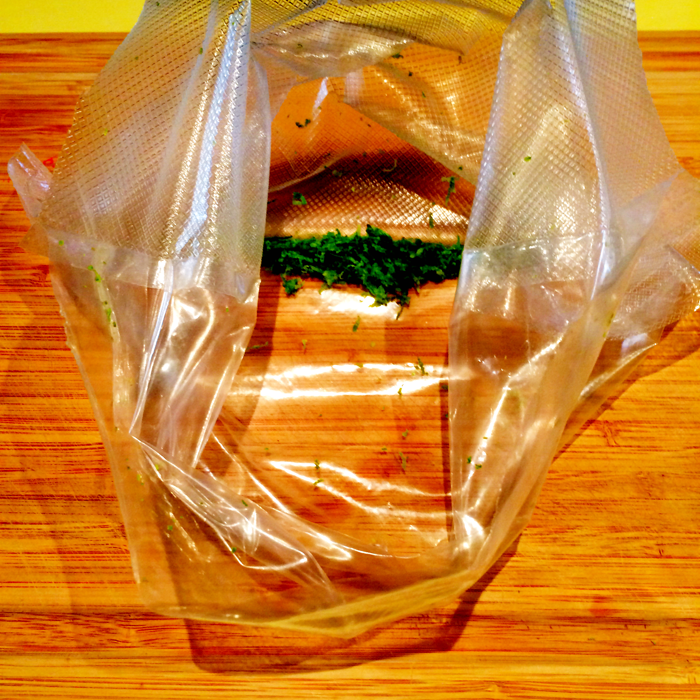 I am doing the Sousvide version so make sure you get it ready and set it to 64°C. Combine all the gin and tonic ingredients and seal in a vacuum bag. Place into the Sousvide for 1 hour. Strain and chill the syrup until ready to use. For the marshmallow coating mix the two ingredients together and sieve into an air tight container for later use. Lastly, grab a small baking tray with high sides and lightly oil and dust with the icing-sugar mix. Set aside.