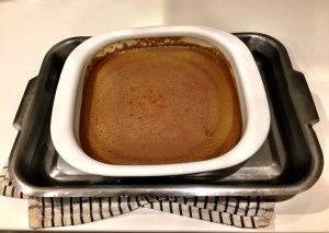 7. Pour the mixture into a terrine dish and place in the bain-marie then cover the bain-marie with aluminum foil. Cook the parfait until the temperature in the centre reaches 64°C. Remove from the oven and allow to cool. Refrigerate for 24 hours before serving.
