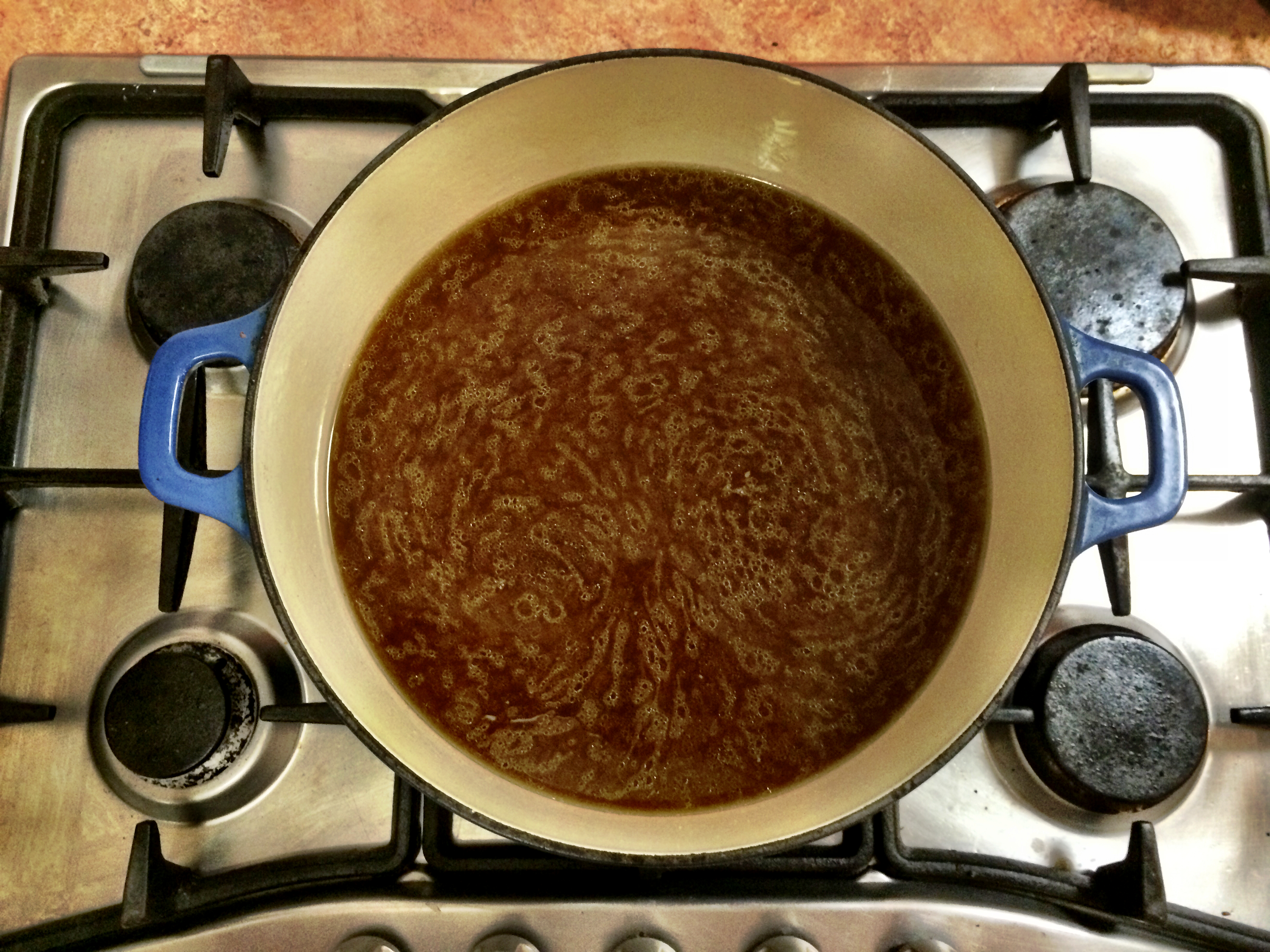 Using poultry scissors, cut the chicken in half, carefully remove the skin and set aside. Heat the grape seed oil in a large saucepan over high heat. Throw in the chicken wings, leek, garlic, and ginger and cook stirring for 4-6 minutes until golden. Once golden add the halved chicken, water, soy sauce, dashi, miso paste, dried mushrooms and bring to a boil. Once boiling reduce to a medium heat and simmer for 1½ hours. Strain, reserving the stock and chicken halves.