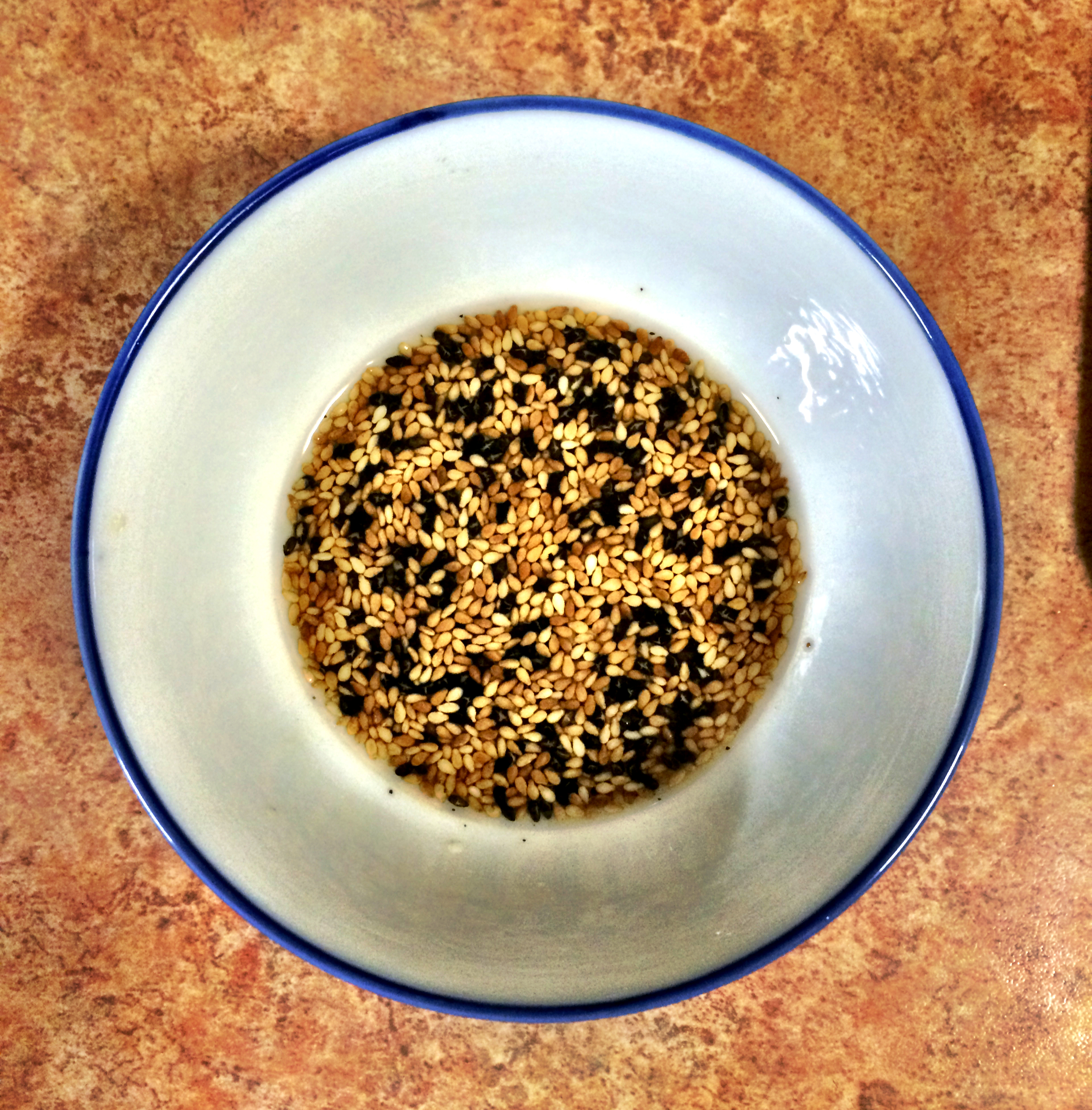 Wipe out the pan and return it to medium heat. For the chilli sesame oil, add the grape seed oil, sesame seeds and cook, stirring for 2-3 minutes or until golden. Remove from the heat and add the chilli, sesame oil and sea salt. set aside.